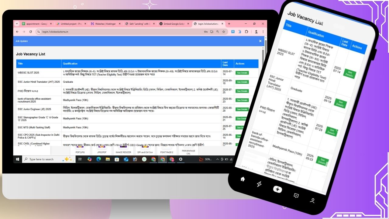 📌 1ClickSolutions CSC পোর্টাল-এ এক জায়গায় পাবেন সরকারি বিভিন্ন চাকরির সঠিক ও আপডেটেড তথ্য। ✅ চাকরির বিস্তারিত যোগ্যতা ✅ আবেদন শুরুর ও শেষ তারিখ ✅ সরাসরি আবেদন লিংক ✅ নির্ভরযোগ্য এবং সময়োপযোগী তথ্য 🎯 আপনি আর চাকরির খোঁজে বিভিন্ন সাইটে ঘুরবেন না! আমাদের পোর্টালের মাধ্যমে সরাসরি অনলাইন আবেদন করুন।